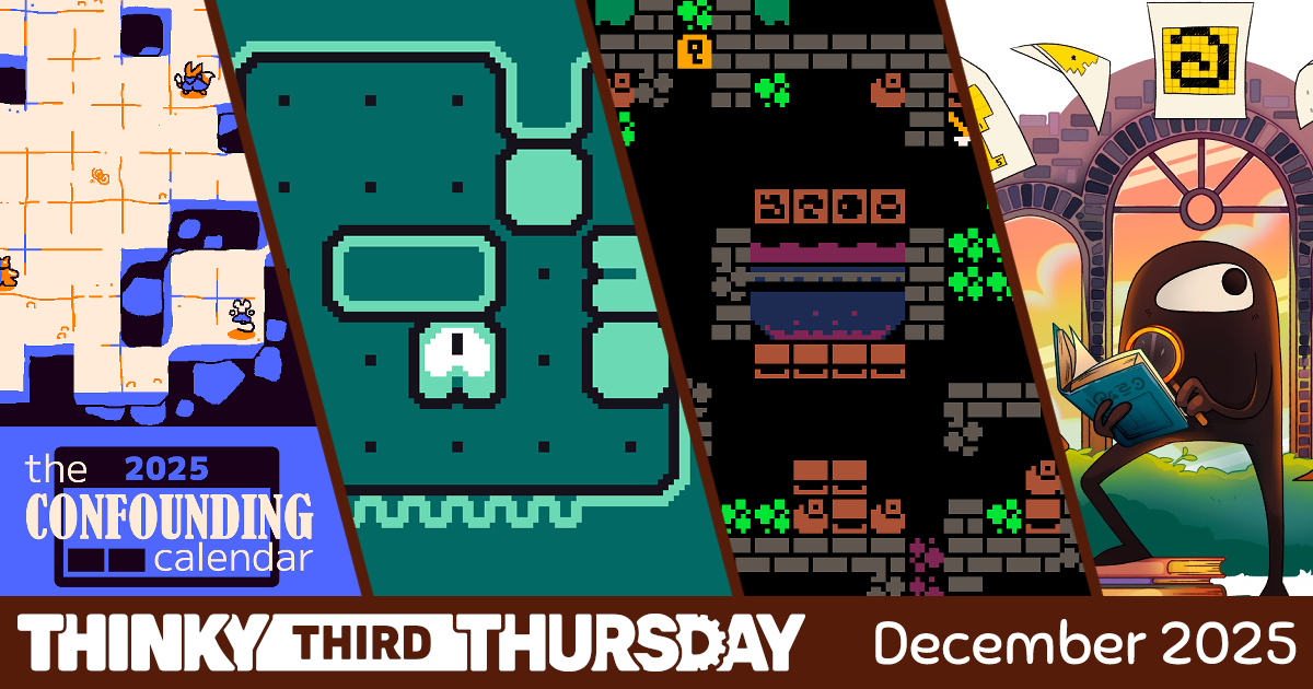 Consider this an early gift: this month's edition features a roundup of entirely free games to tide you over the festive break. Better yet, some of these are ongoing collections like Thinky Dailies and the Confounding Calendar, giving you fresh puzzles every day. The only thing better than a new thinky puzzle game is a new thinky puzzle game every day!
